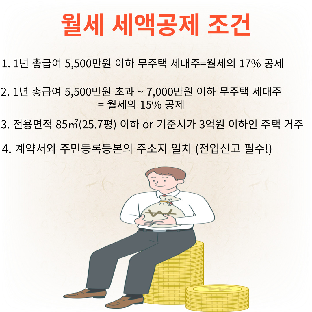 월세에 살고 있다고 해서 누구나 다 월세 세액공제를 받을 수 있는 것은 아닙니다. 무주택자로 월세 거주 중이시라면 세액공제를 받을 수 있는데, 그 조건에 대해 한번 알아보도록 하겠습니다.