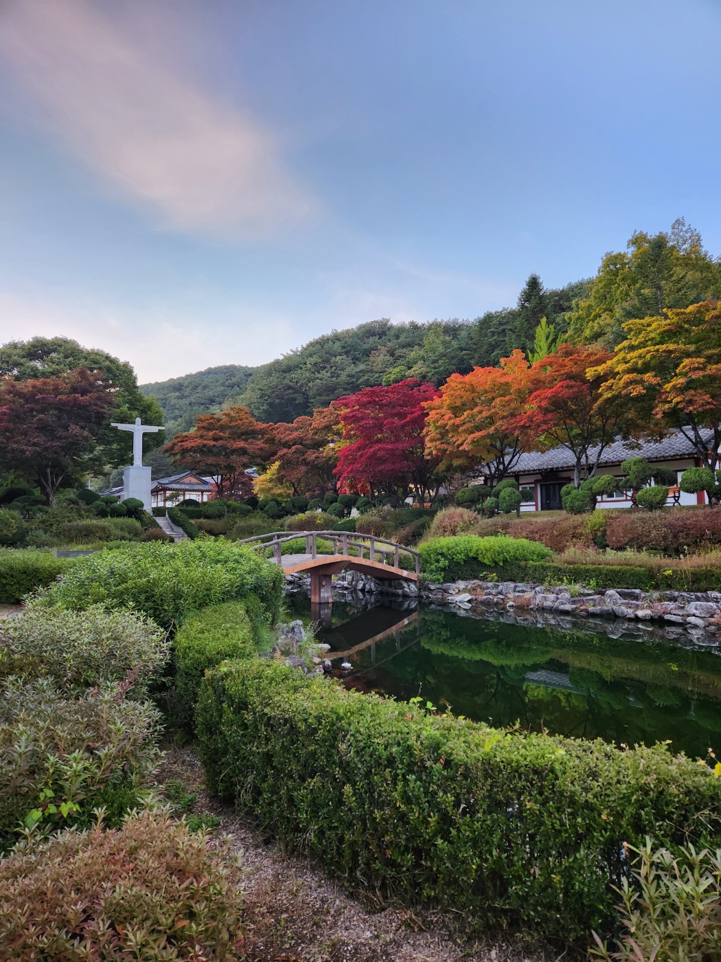 한국의 그림 같은 풍경 속에 자리 잡은 제천의 베론 성지는 시대를 초월한 사랑 이야기를 담고 있을 뿐만 아니라 숨이 멎을 만큼 아름다운 자연을 배경으로 펼쳐진다. 여행자로서 이 평온한 안식처로의 여행은 자연과 신화의 교향곡 속에서 모든 감각을 자극하는 감각적 즐거움입니다. 신사는 신성한 땅으로 이어지는 생기 넘치는 녹지 태피스트리인 푸르른 언덕에 둘러싸여 있습니다. 우뚝 솟은 고대 나무들이 자연의 덮개를 만들고, 그 잎사귀들은 수세기의 비밀을 담고 있습니다. 공기에 꽃이 만발한 향기가 스며들어 순례에 향기로운 차원을 더해줍니다. 신사에 다가가면서 매혹적인 소리의 풍경이 전개됩니다. 새소리는 근처 개울의 잔잔한 속삭임과 조화를 이루며 여행자에게 세레나데를 불러주는 주변 멜로디를 만들어냅니다. 분주한 현대 생활로부터의 휴식, 부드러운 나뭇잎의 바스락거리는 소리가 마치 환영의 합창처럼 느껴지며 방문객을 시간이 느려지는 세계로 초대합니다. 건축학적 경이로움인 신사 자체는 자연 캔버스와 완벽하게 통합됩니다. 섬세한 조각이 석재 외관을 장식하여 인근 식물의 복잡함을 반영합니다. 이끼로 뒤덮인 길은 신성한 숲을 통과하여 여행자들이 이 매혹적인 성역의 숨겨진 구석구석을 탐험하도록 유도합니다. 신사의 중앙 장식은 건물의 신성한 아름다움을 반영하는 반사 호수입니다. 고요한 물은 주변 나뭇잎의 생동감 넘치는 색상과 완벽한 거울을 제공하여 숨 막히는 파노라마를 만들어냅니다. 방문객들은 물가를 따라 산책하면서 풍경과 공기에 스며드는 고대 사랑 이야기에 대한 깊은 연결을 느낄 수 있습니다. 돌계단을 오르면 탁 트인 전망이 펼쳐져 여행자에게 구불구불한 언덕과 무성한 계곡의 탁 트인 전망을 선사합니다. 각각의 유리한 지점은 신사와 주변 자연환경 사이의 공생 관계에 대한 새로운 시각을 제공합니다. 풍경은 살아있는 캔버스가 되어 하루가 펼쳐지면서 끊임없이 변화하는 그림을 그립니다. 봄에는 벚꽃이 신사를 은은한 핑크색으로 물들이고, 가을에는 단풍이 붉은색과 금색의 생기 넘치는 태피스트리로 변합니다. 계절은 신사 이야기의 장으로 바뀌고, 여행자는 살아 숨 쉬는 걸작에 푹 빠져드는 자신을 발견하게 됩니다. 자연의 품 안에 자리 잡은 제천의 베론성지는 단순한 여행지가 아닌 감각적인 여행입니다. 여행자들은 건축과 신화의 경이로움을 목격할 뿐만 아니라 발아래 땅의 맥박을 느끼고, 향기로운 공기를 마시고, 바람의 속삭임을 들을 수 있습니다. 이는 문화와 문화의 조화로운 결합에 대한 증거입니다.